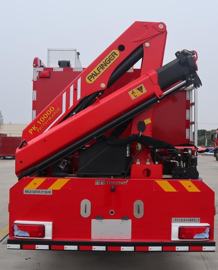 3.3 | 車后部設(shè)有登頂爬梯,能使消防人員迅速登上車頂,梯子和踏板站立面均做防滑處理;車頂設(shè)有防護欄板,車頂鋪設(shè)滑板以確保人員在車頂安全行走。 |