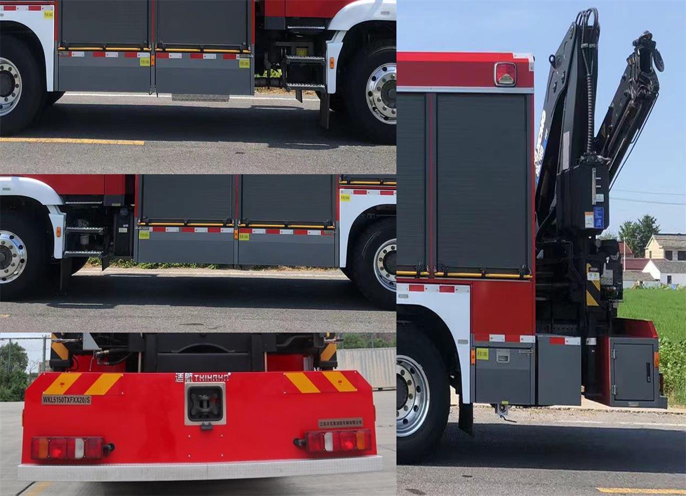 3.3 | 車后部設(shè)有登頂爬梯,能使消防人員迅速登上車頂,梯子和踏板站立面均做防滑處理;車頂設(shè)有防護(hù)欄板,車頂鋪設(shè)滑板以確保人員在車頂安全行走。 |